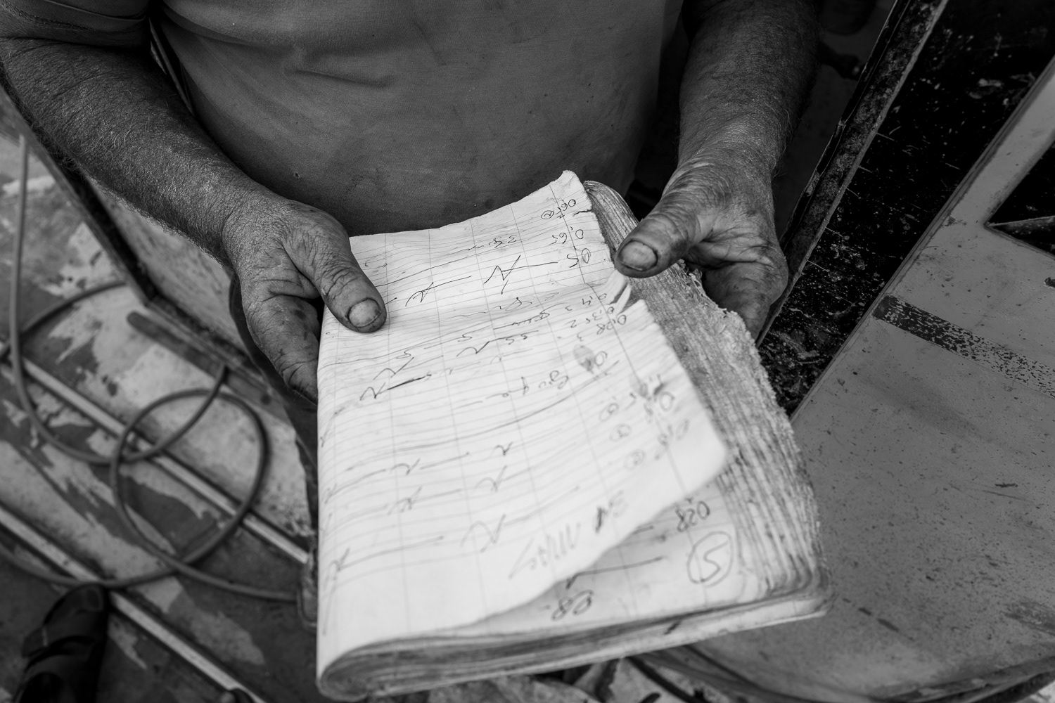 Bathús è il termine greco che indica profondità; è negli occhi dei pescatori, è nel buio della notte che si fonde con l’abisso del mare. Il reportage partito a maggio 2016 a bordo d’imbarcazioni della marineria sambenedettese che solcano il Mare Adriatico, documenta il mestiere del pescatore svolto con diverse tecniche di pesca; fattori come il cambiamento climatico, l’inquinamento, l’overfishing, l’itticoltura, la mancanza di ricambio generazionale fino alla conversione delle aree portuali in zone d’intrattenimento minano la vita di questi “folli” innamorati delle loro radici, della vita di confine tra terra e mare che continuano a seguire quel richiamo, da soli o con la loro ciurma, per difendere la tradizione arcaica forgiata nelle profondità del mare. Purtroppo l’incentivo alle demolizioni suggerisce una via di fuga inevitabile per chi non riesce più a mantenerci le famiglie.